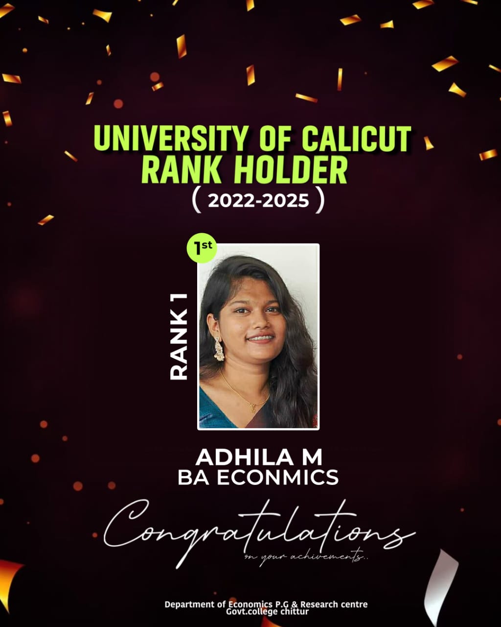 This is an ideal place to pursue higher education in today’s rapidly changing world, fostering a calm and focused mindset. I am immensely grateful to our teaching community, library and office staff who work tirelessly to provide the best of our students. I also extend my heartfelt thanks to the Government of Kerala for their policy initiatives and generous funding, which enable us to realize our dreams.