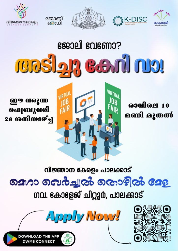 ചിറ്റൂർ പ്രദേശത്തെയും സമീപ പ്രദേശങ്ങളിലെയും ഉദ്യോഗാർത്ഥികൾക്കായി വിജ്ഞാനകേരളം ഒരുക്കുന്ന മെഗാ ജോബ് ഫെയർ.
